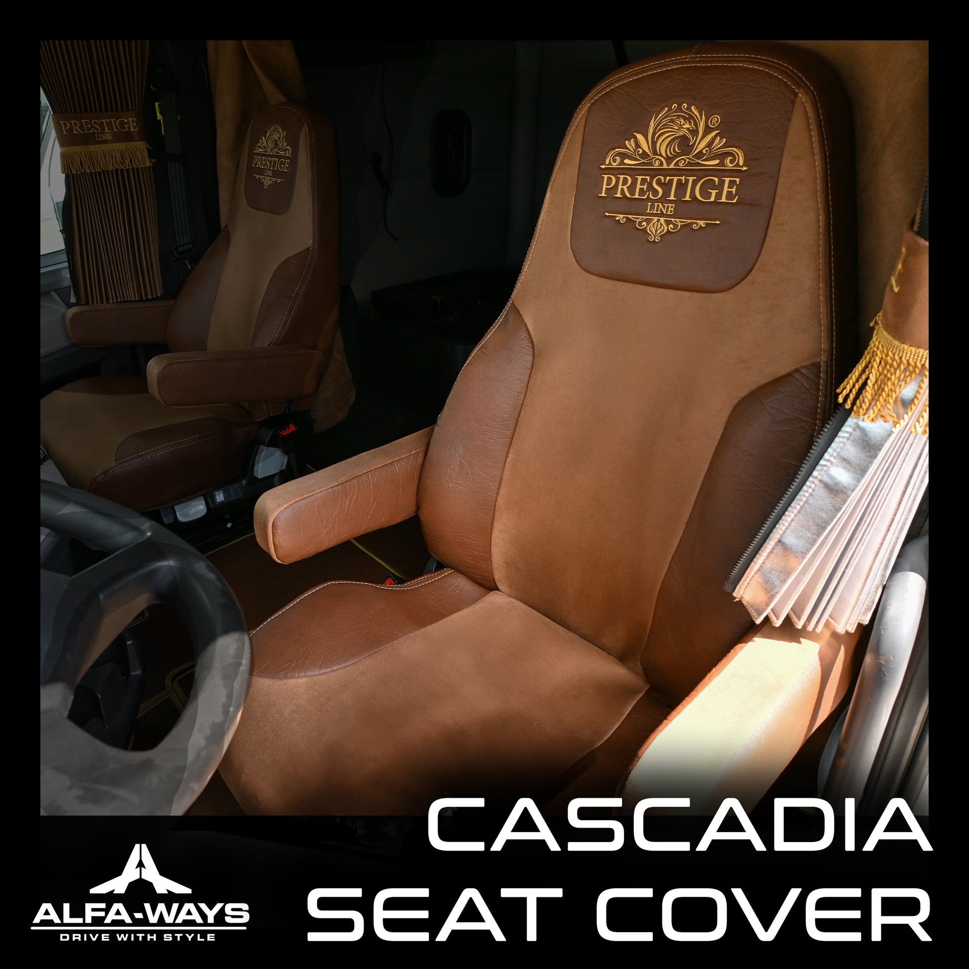 FREIGHTLINER CASCADIA 125, 116, 126 (2014-current) (33" back) truck seat cover & armrest covers Prestige-Line BROWN